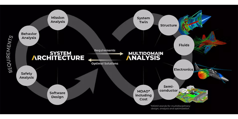 It represents complex system-of-systems architectures by integrating multi-fidelity digital engineering models across the entire lifecycle.